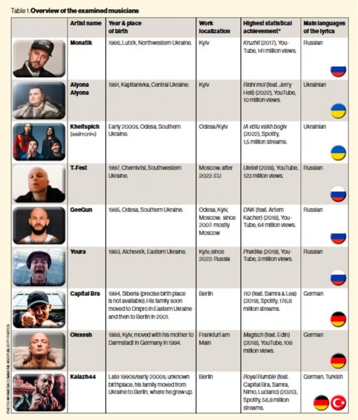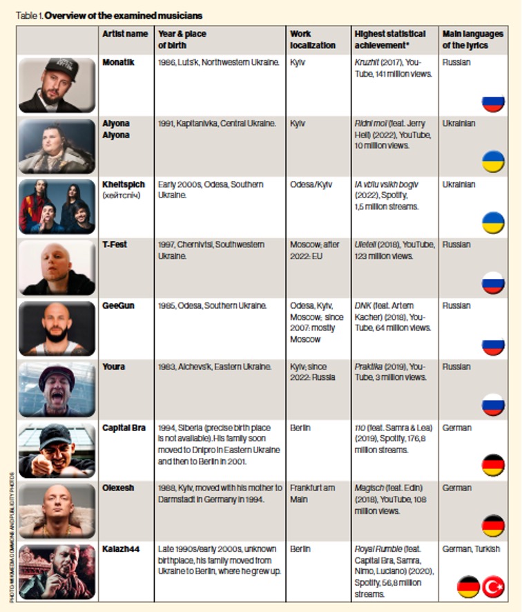 Peer-reviewed articles Processing of the Russian war against Ukraine in the lyrics of Ukrainian rappers in Ukraine, Germany, and Russia