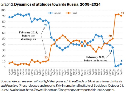 Now, it may be interesting to take a new look at the attitude climate in Ukraine and how it has changed; the war has continued since 2014 and escalated in 2022, and while the international community keeps speaking about peace and security guarantees, there is no real perspective of the war ending.